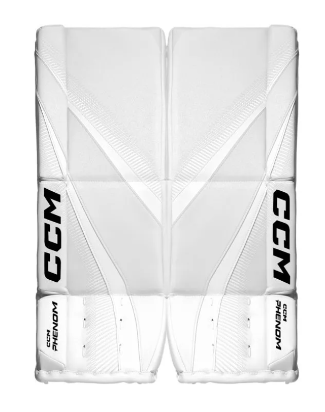 To help goalies stay centered and protected, CCM equips the Phenom pads with dense knee and calf padding, providing thick, impact-absorbing cushion through the key contact areas. On top of the knee stacks, a Hexa Suede grip lining adds an extra layer of control, offering a tacky, hex-textured surface that helps keep knees in place during lateral movements and saves.